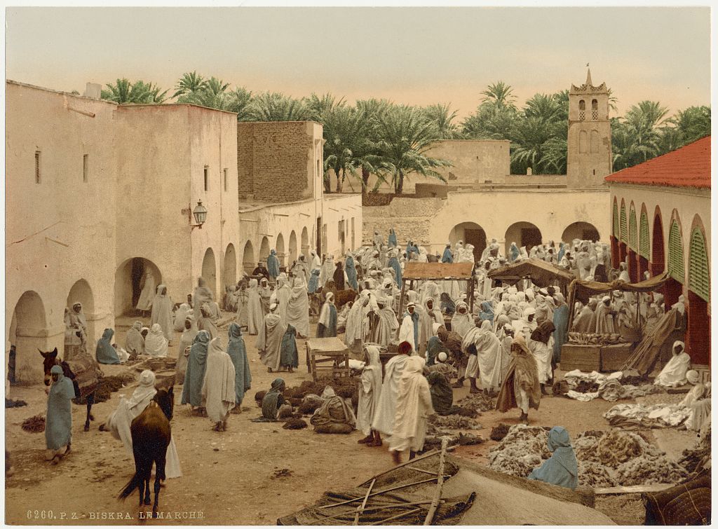 The images in this collection give us a brief insight into Algerian history, specifically, life in the late 19th century. They all date back to the year 1899, during which Algeria was still under French rule. The 40 colour photo lithographs were produced from black-and-white negatives, a method known as ‘photochrom‘. All images are in the Public Domain.