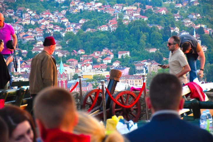 Elmedin is leading us up to a section of the 18th century Ottoman fort built above Sarajevo called the Yellow Bastion. From there, the view at sunset is breathtaking; a crimson glow shrouds the green mountains surrounding the ancient city like a bowl. But it is not to admire the view that our guide for the evening has brought us here. In athrowback to classical Muslim times, Sarajevo has reignited the tradition of firing a ‘cannon’ at sunset every day during Ramadan to signal the end of the fast. This event is part of the city’s annual Ramadan Festival – now in it’s third year – and uses a small mock cannon loaded with fireworks. It draws crowds of people from all over – muslim and non muslim. They come armed with picnic ‘iftars’ and sit with friends, family and strangers to break their fast in what has become Sarajevo’s most popular open iftar.